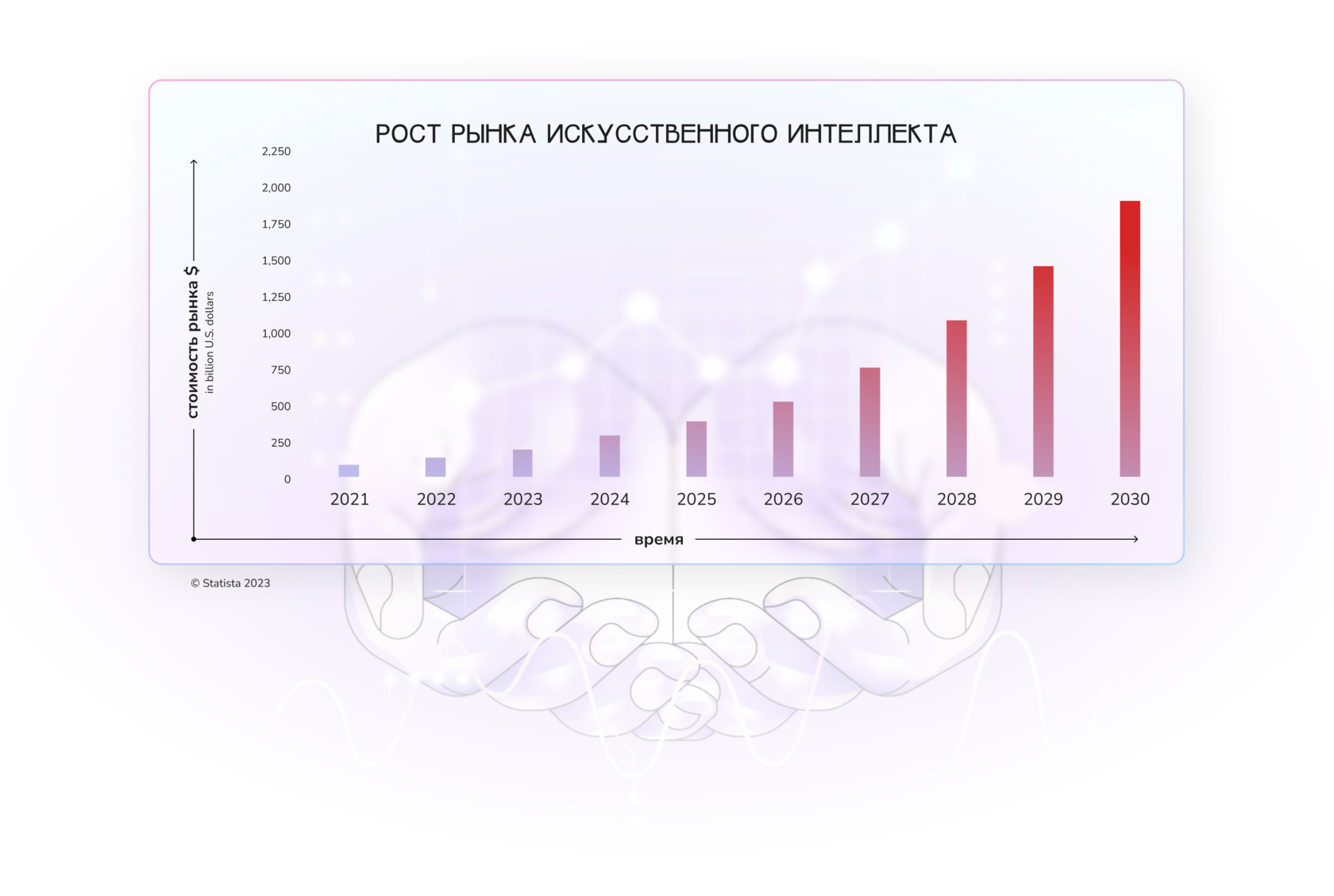 За последние 5 лет рынок искусственного интеллекта вырос до 100 мрд$, а к 2030 году Statista прогнозирует рост до 1,75 трлн$.